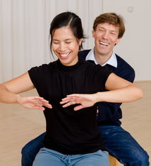 The connection of the hands and arms, shoulder girdle and trunk affects our breath and voice. The sensitive areas around the larynx, our “voice generator”, should feel light and wide, and ideally our gestures support our personal expressions.